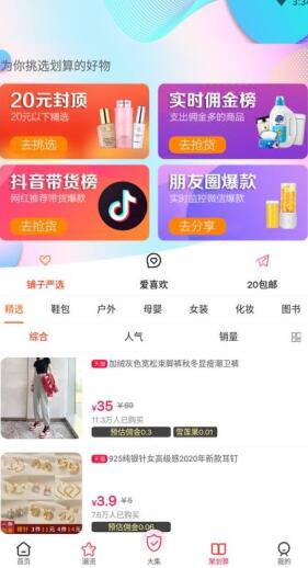 2、显示了用户分享商品可赚取的佣金,可根据佣金的高低选择商品进行分享。