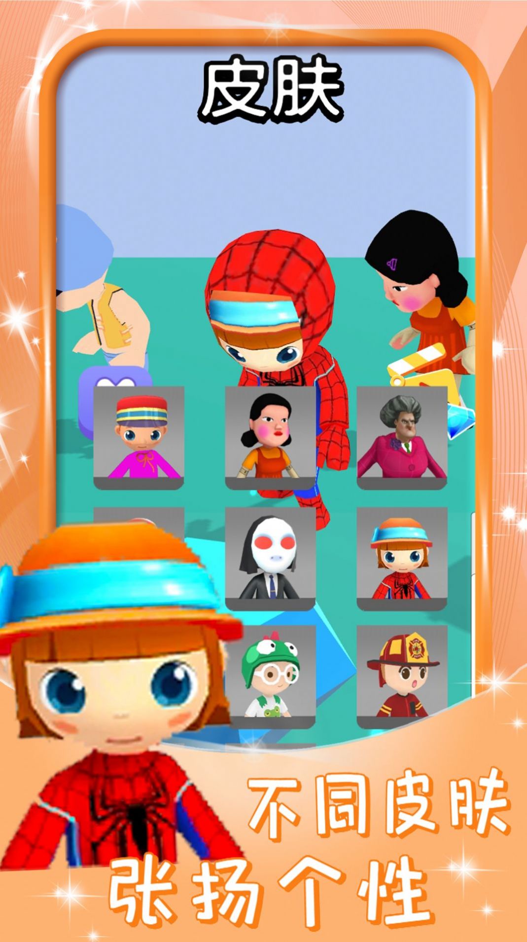 3、人物均为迷你卡通形象,可选择多种外型和风格解锁不同的人物。