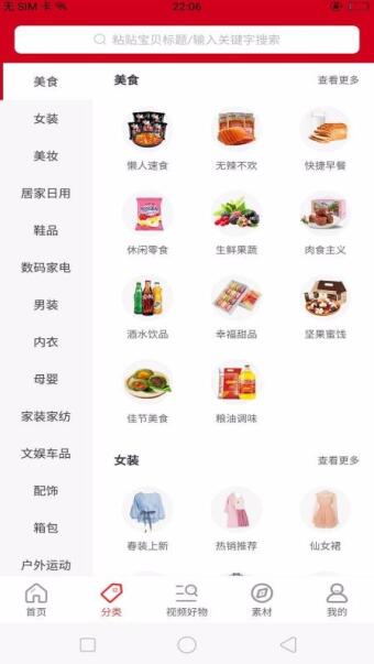 2、还有清晰丰富的美食商品,该类别栏旁边为用户提供懒人速食支持你购物。