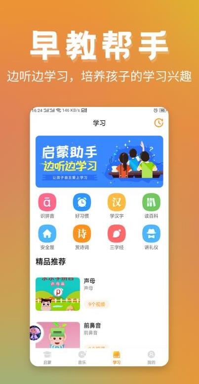 1、提供多方面的学习,包括汉字、拼音、安全、古诗词、礼仪等符合你期望。