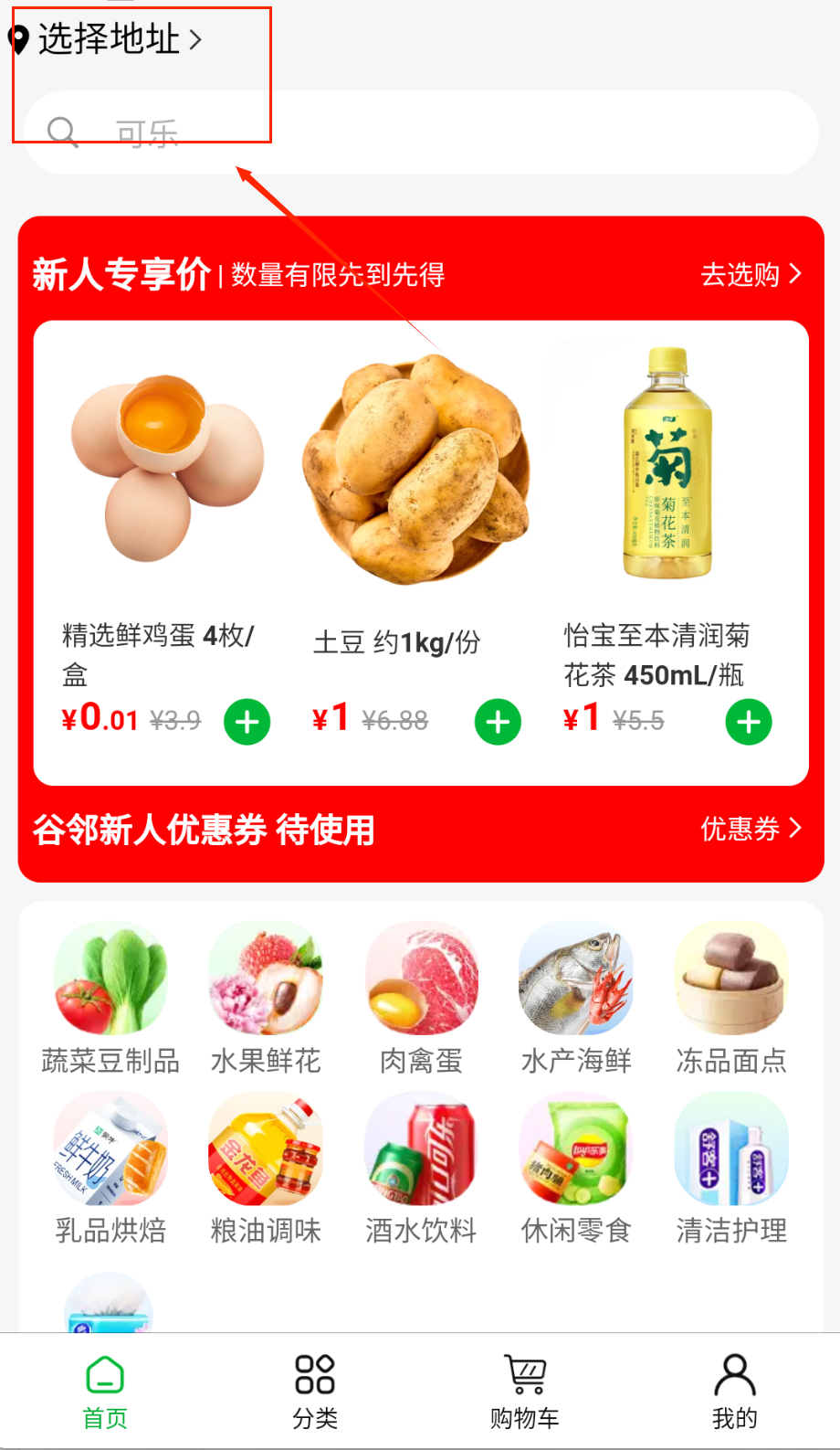 1、打开应用自动定位附近合作超市,首页展示今日特价与推荐商品,分类导航快速找到目标品类。
