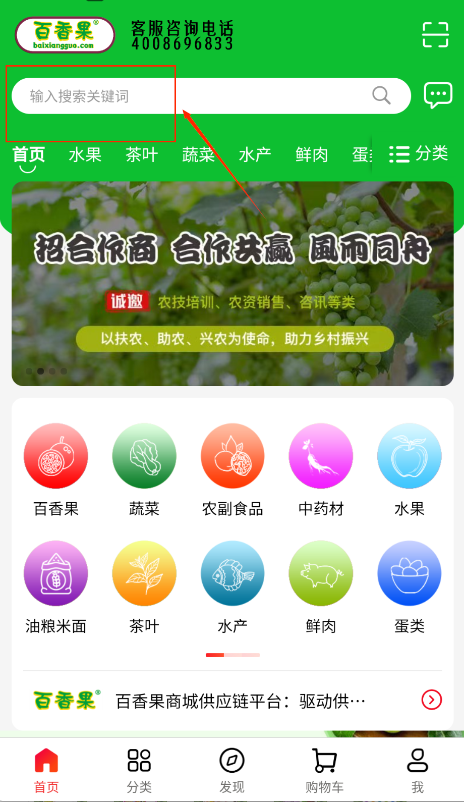 2、搜索框输入关键词查找目标农产品,筛选条件设置价格区间与发货地,商品详情页查看高清实拍图与视频介绍。