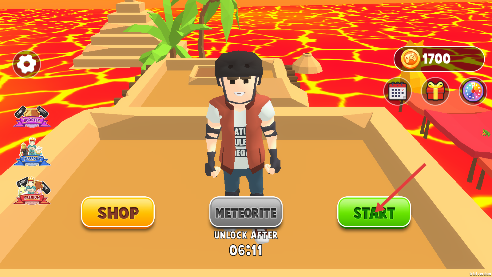 1、点击绿色【START】按钮进入游戏,初始持有【1700】金币,可后续用于商店购物。