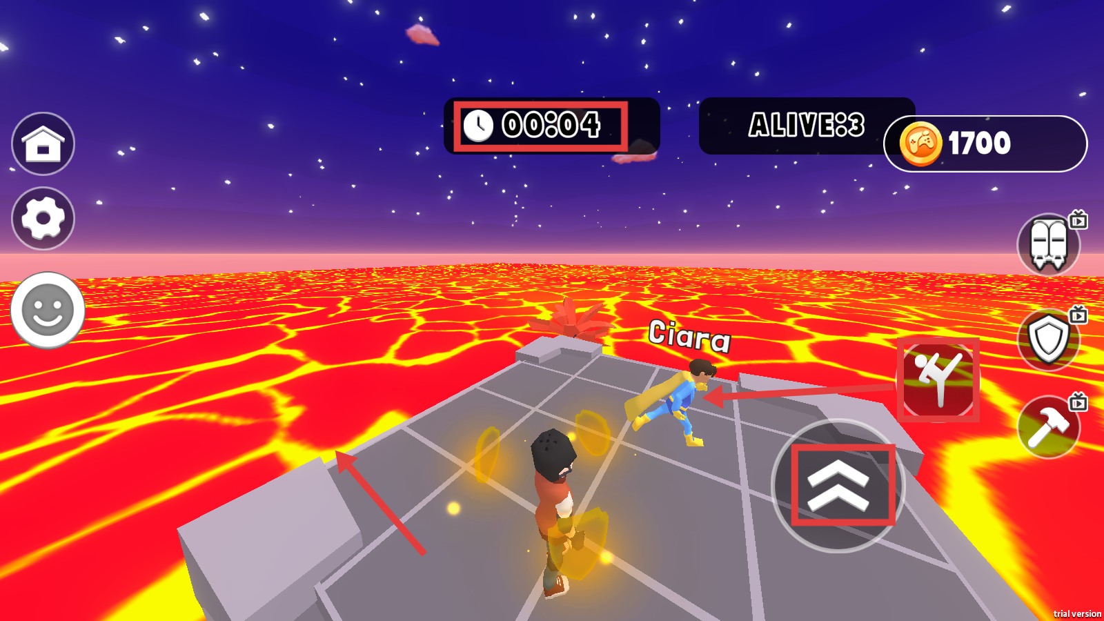 1、熔岩竞技机制:环绕战场的沸腾熔岩形成天然屏障,精准推挤动作可将对手直接送入危险区域实现淘汰。