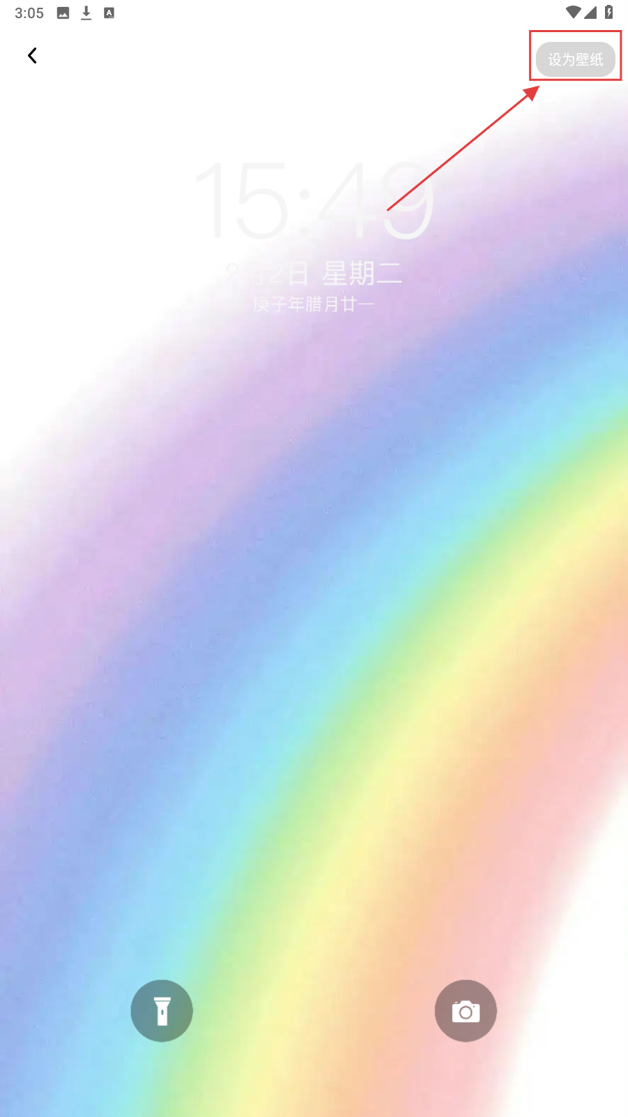 4、预览满意后,点右上角【设为壁纸】,将彩虹壁纸设为手机背景。
