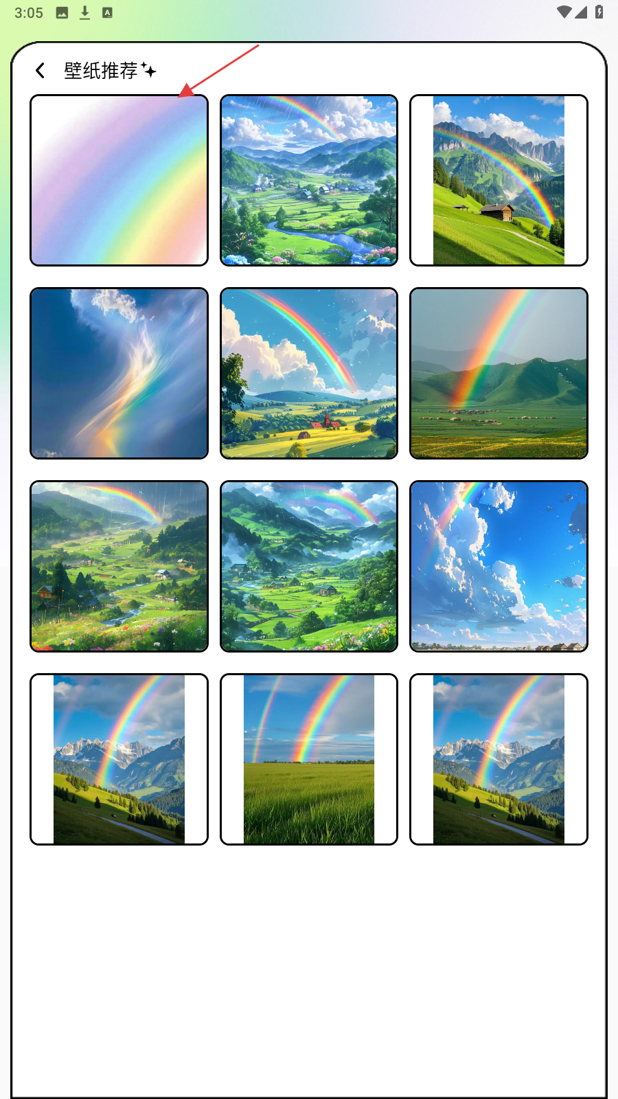2、进入分类后,在【壁纸推荐】里,点彩虹样式壁纸查看详情。