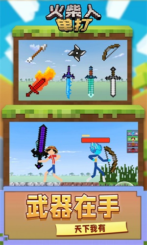 1、火柴人单打游戏中玩家需要控制火柴人挥动武器与他人作战。