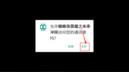2、出现“允许蜘蛛侠英雄之未来冲突访问您的通讯录吗?”弹窗时,点击“允许”继续。