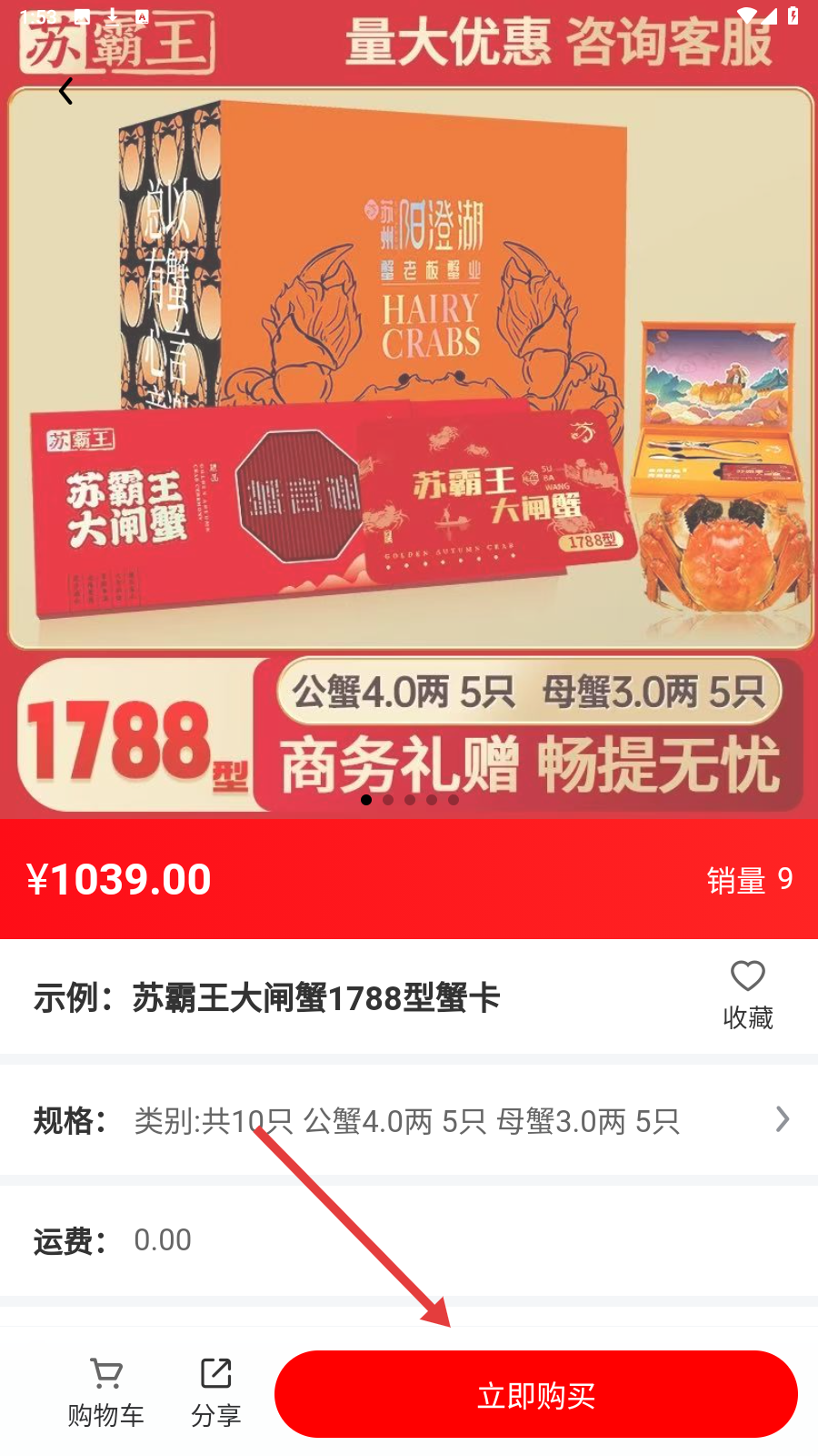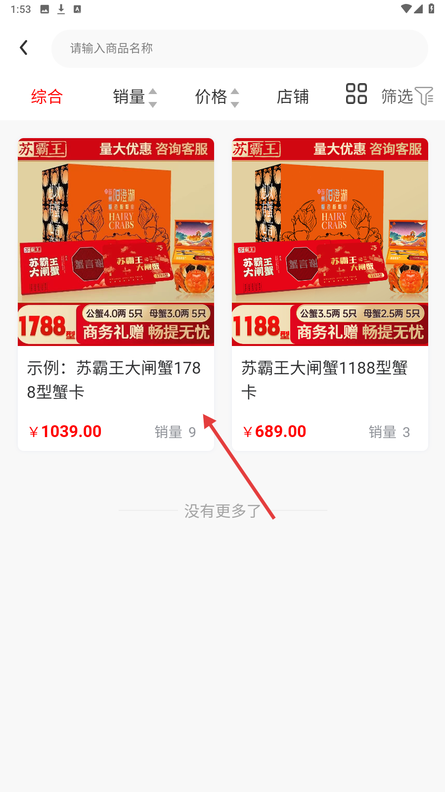 3、商品列表页,对比【苏霸王】等蟹卡,选心仪规格。