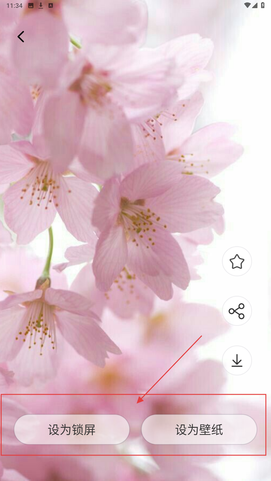 4、在壁纸页面,可以选择【设为锁屏】或【设为壁纸】,设置个性化桌面。