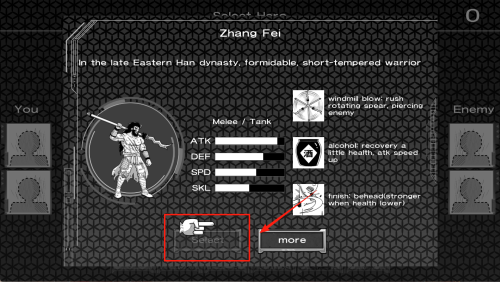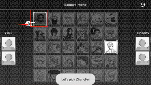 2、出现“Let's pick ZhangFei”字样时,点击张飞头像即可选中他。