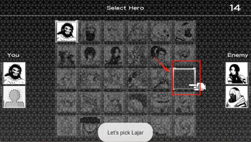 4、显示“Let's pick Lajar”时,若想换人选拉贾就点击他,否则直接点击确认完成角色选择。