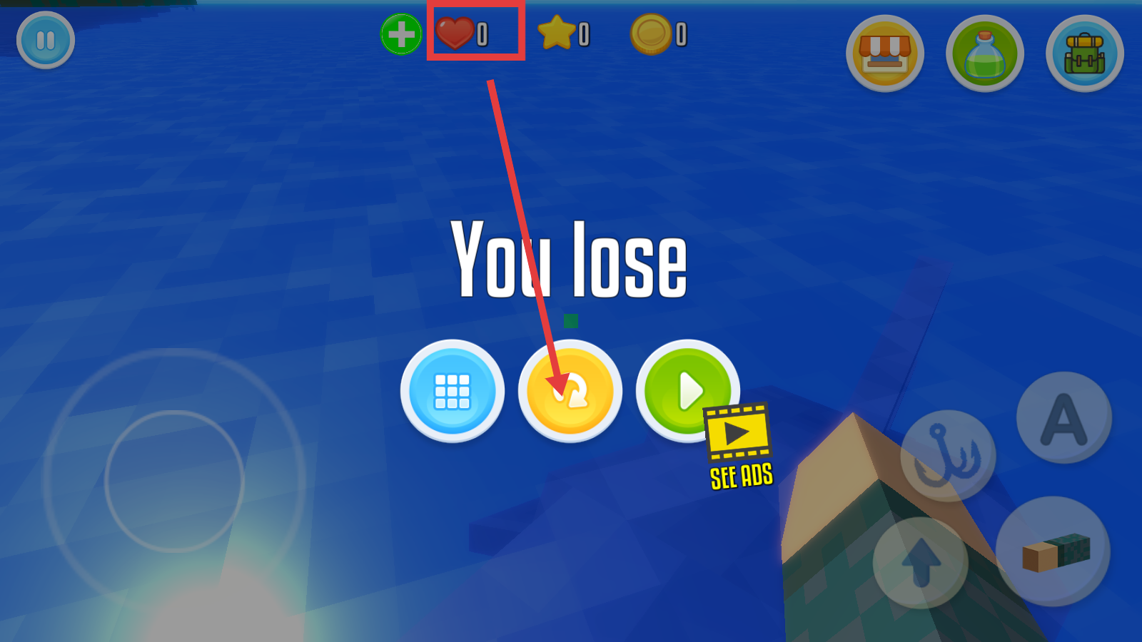 4、若【血量-0】显示You-lose,点击重来按钮,调整策略再次挑战,提升生存几率。