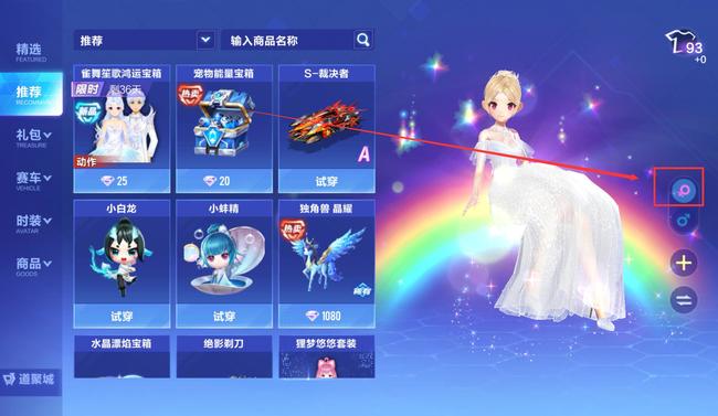 2.进入商城后点击右边的性别就可以切换性别了。