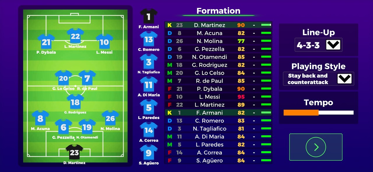 3、美洲杯比赛游戏内去灵活搭配足球运动员,组成最强队伍参加比赛。