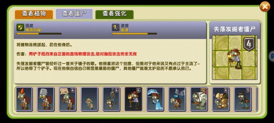 1、铲子僵尸即失落发掘者僵尸,可将植物连根拔起,扔在他身后,用铲子抵挡来自正面的直线物理攻击,但对抛投攻击完全无效。