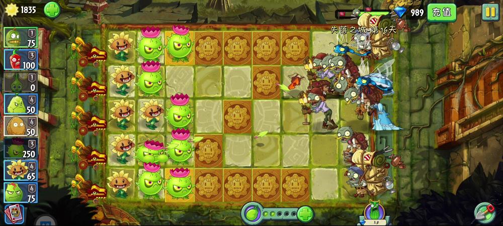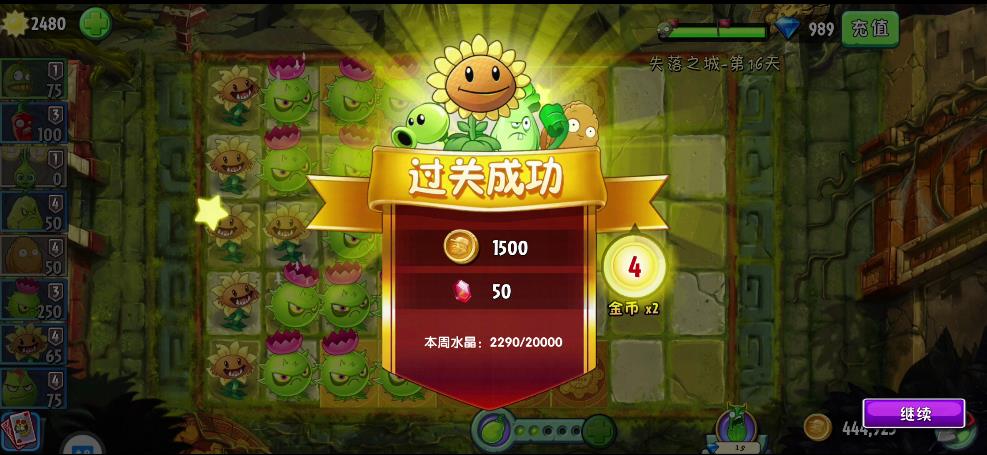 2、消耗阳光提升植物战力,布置不同角色,快速消灭丧尸是能够加速升级。