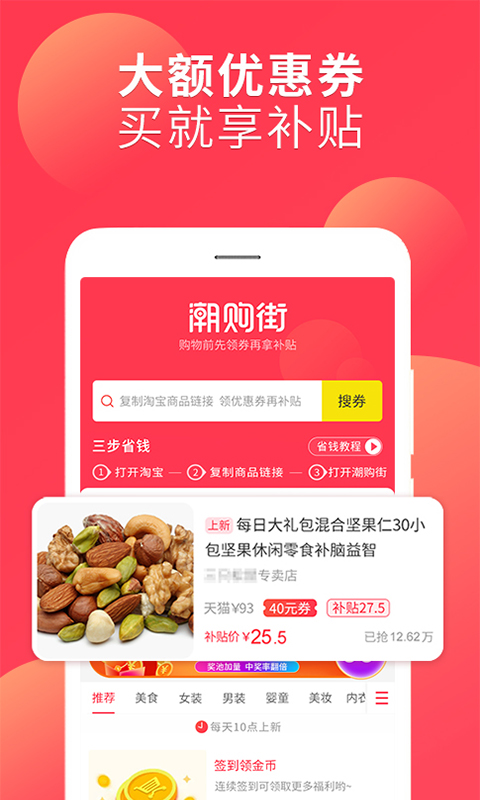《潮购街》是一个专注于省钱和赚钱的在线购物平台,汇聚了丰富的产品信息,还提供了大量的产品优惠券,让用户在购物时轻松省钱。并且轻松分享产品后,他们可以获得产品佣金。并且在朋友下单后,用户将获得更多福利,让用户轻松分享赚钱。因此想要省钱、赚钱的用户可以通过这个平台轻松实现。
