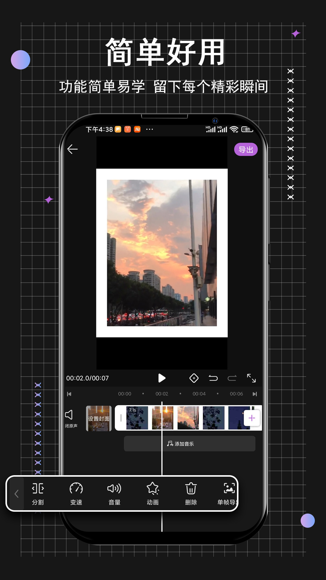 1、小时代短视频编辑软件的用户无需复杂操作,即可制作自己想要的视频内容。