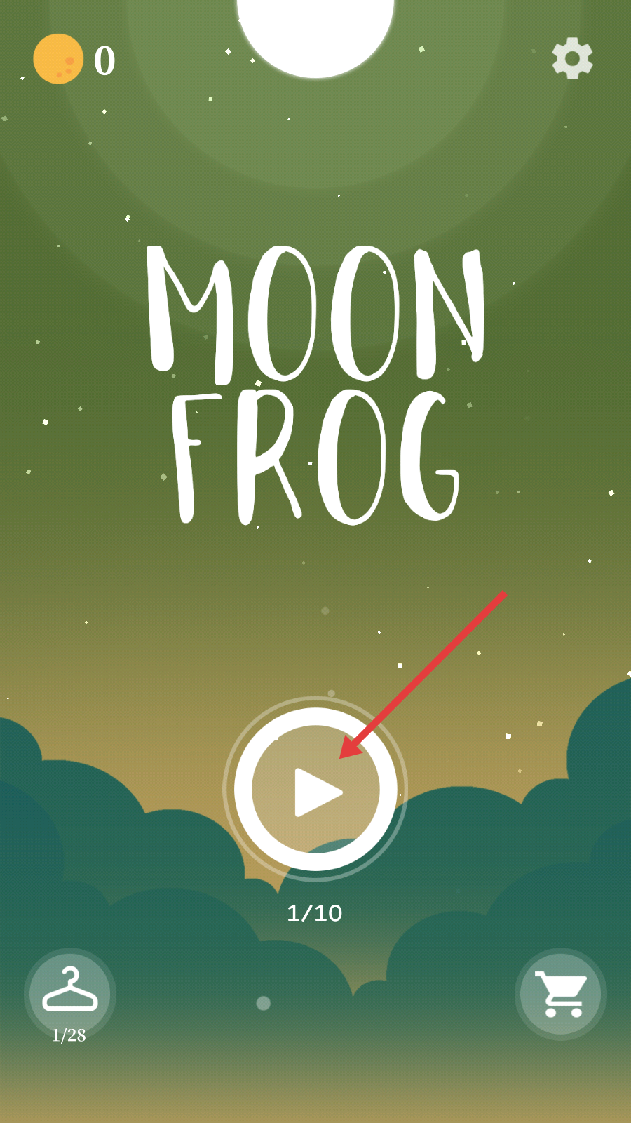 1、进入游戏界面后,点击【MOON-FROG】下方的播放按钮开启游戏,同时可留意界面功能按钮位置。