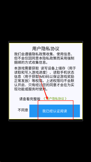 2、同意隐私协议:阅读第二份“用户隐私协议”后,勾选“我已经认证阅读”,再点“同意”以继续。