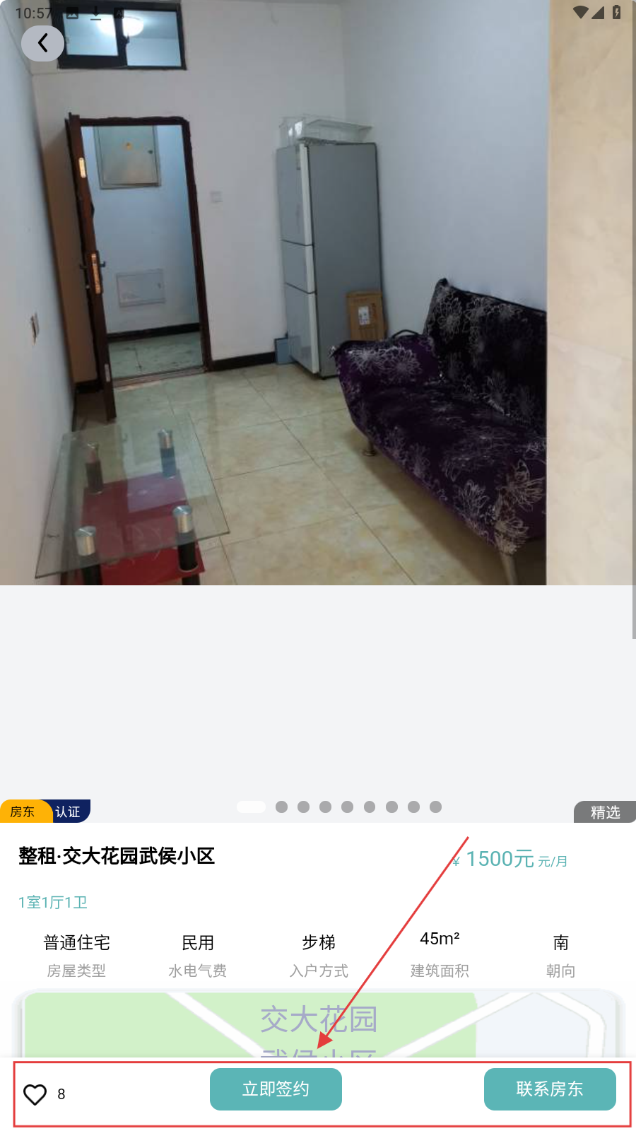3、进入房源详情页,查看房源详细信息,如若满意,点击【立即签约】。