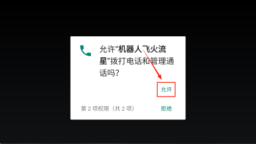 2、授权通话权限:当系统弹出“允许机器人飞火流星拨打电话和管理通话吗?”时,点击“允许”以便后续联机功能可用。