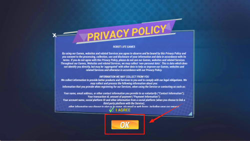 3、接受隐私政策:阅读“PRIVACY POLICY”后,点击“AGREE”或“OK”按钮,同意条款并继续。