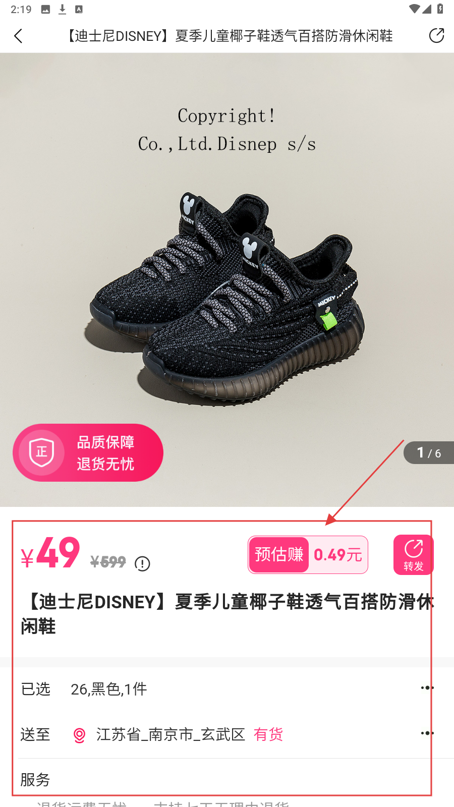 4、点选商品,查看价格、规格、配送等信息,决定是否购买。