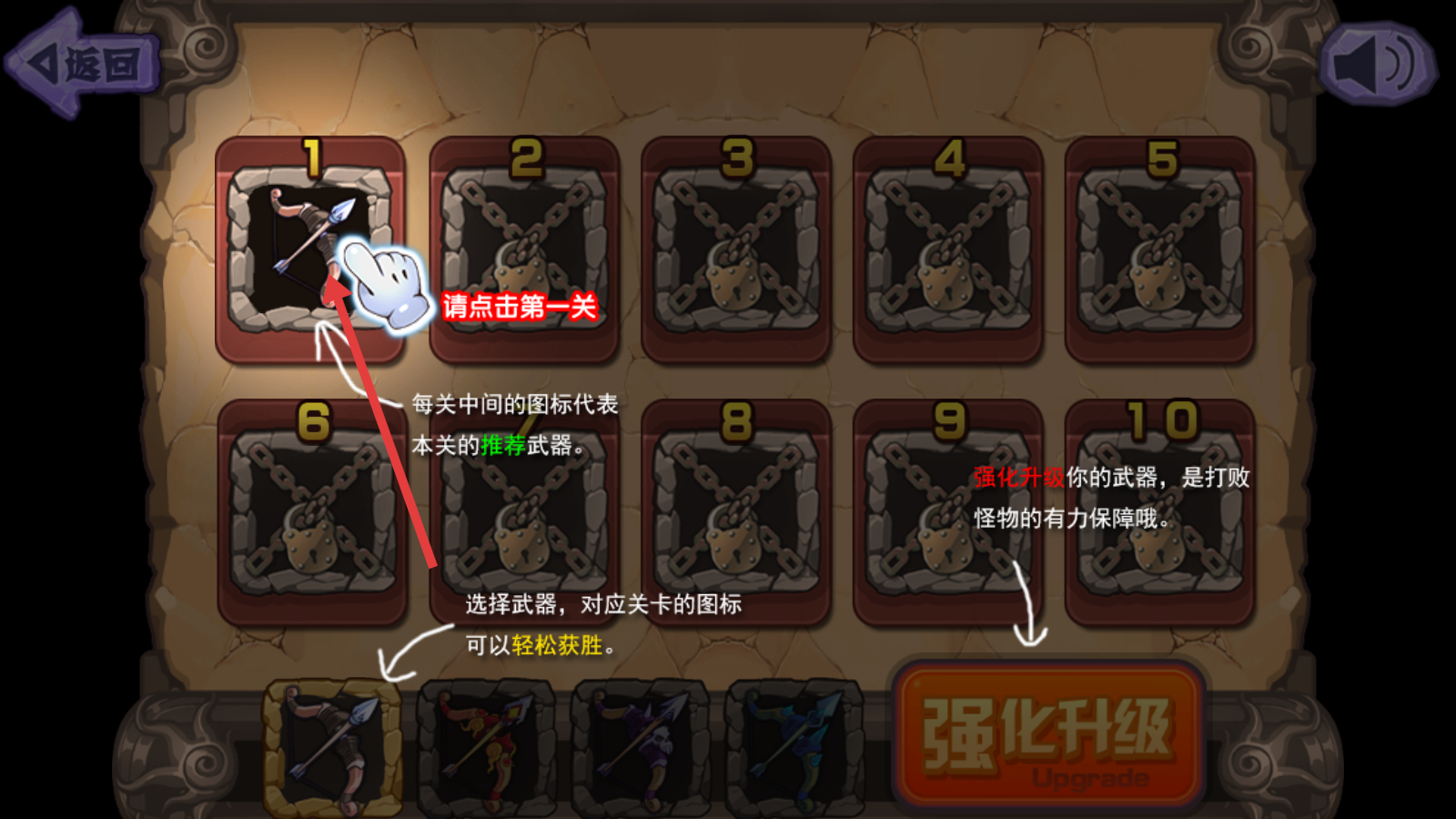4、胜利后点击【强化】按钮升级武器,提升后续关卡战力,再选【下一关】继续挑战新关卡。