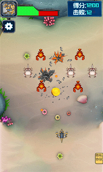 1、对抗这些疯狂的螃蟹,准备好让你的技能和炮弹成为最强大的捕蟹者射击。