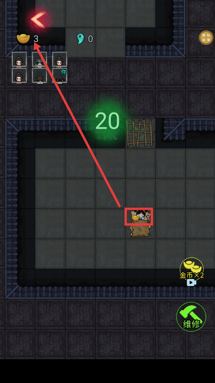 2、挑战中操纵角色与草床互动获取【元宝- 1】,逐步积累到3,为后续建筑建造储备资源。