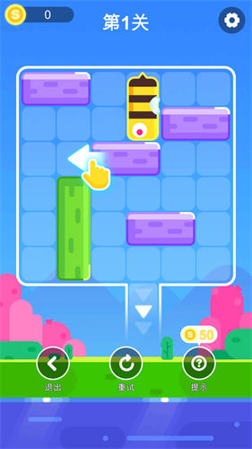 1、华容道逃脱卡通的游戏画风,好听的背景音乐,可以帮助玩家放松心情,愉快游戏。
