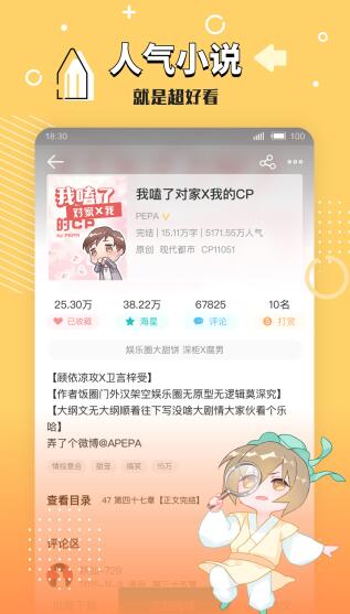 《长佩阅读手机版》软件精致的越多界面可以给读者极好的越多体验,工作人员对每一本小说都根据书籍的特点进行了分类,无论你是喜欢的扮猪吃老虎类型的网文书籍,还是出色的文学巨作都有,你都可以在这里找到,所有的书籍资源都是正版免费提供给您的,让你可以在阅读的时候有很好的体验,不用但心广告的骚扰。