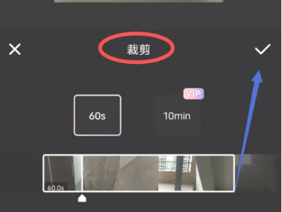 3、接着选择视频之后,剪辑视频之后点击右上角【√】;
