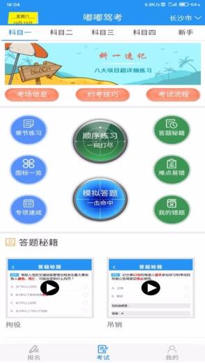 3、提供多种考试练习模式,在考场为用户提供章节练习、序列练习、答题秘籍等多种练习模式图标。