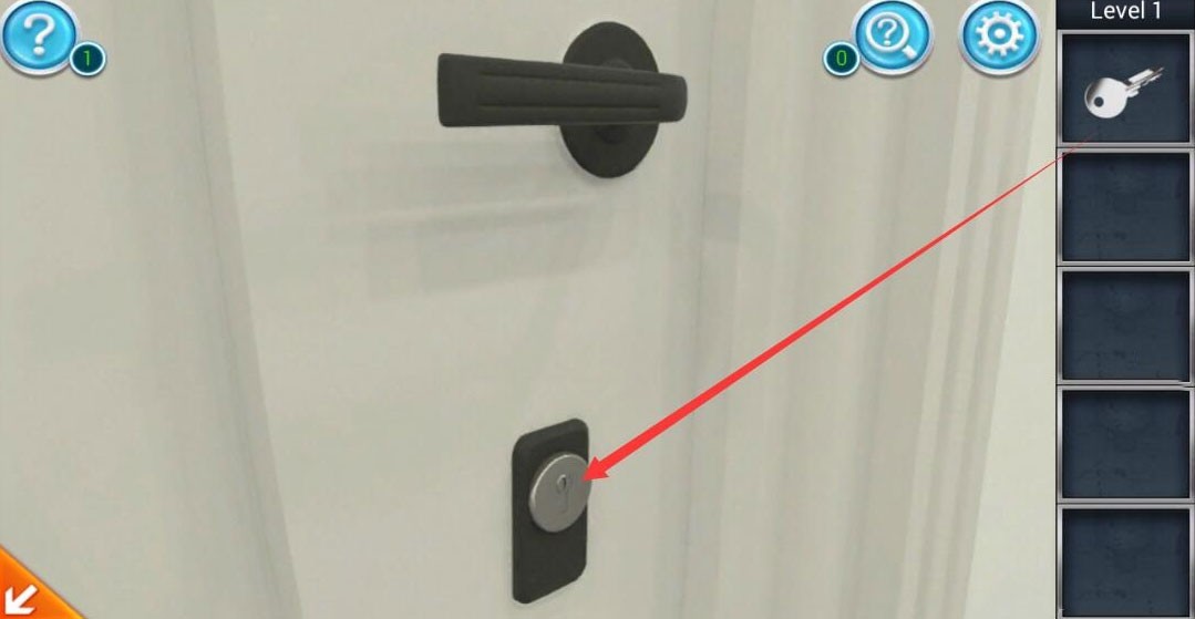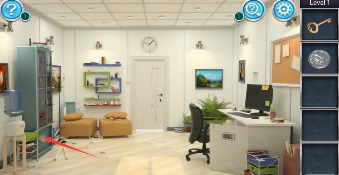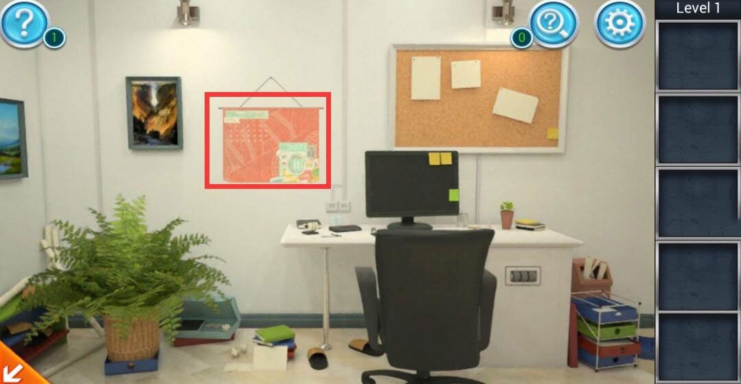 1、点击右侧墙壁上挂历,会发现挂历后边藏着一把钥匙,点击得到钥匙。
