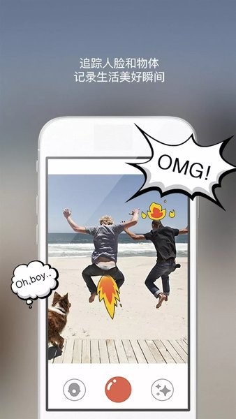 1、美萌美颜相机app表情识别做出表情,触发神奇的动画效果。