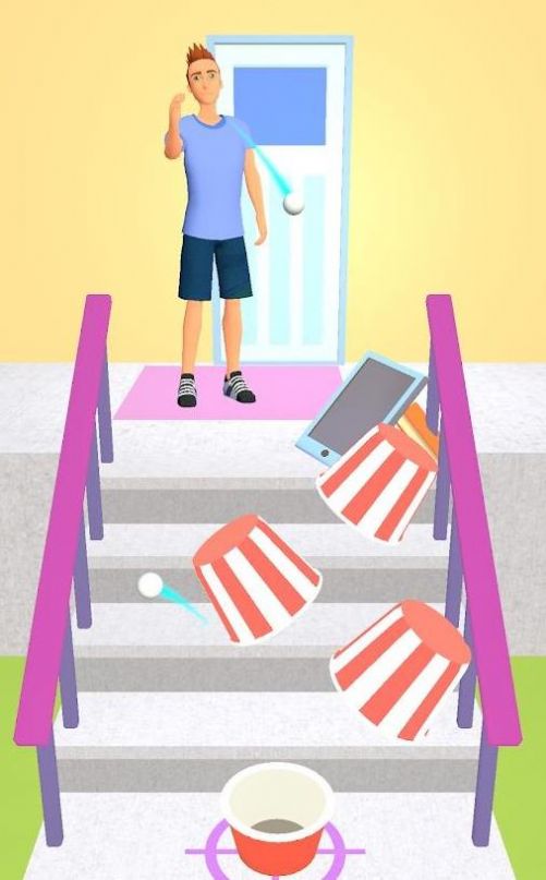 1、点击开始游戏,角色会自动向固定方向扔球,点击椅子等家具拖动。