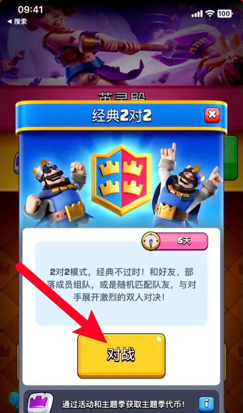 3、在经典2v2界面, 点击下面的对战即可。