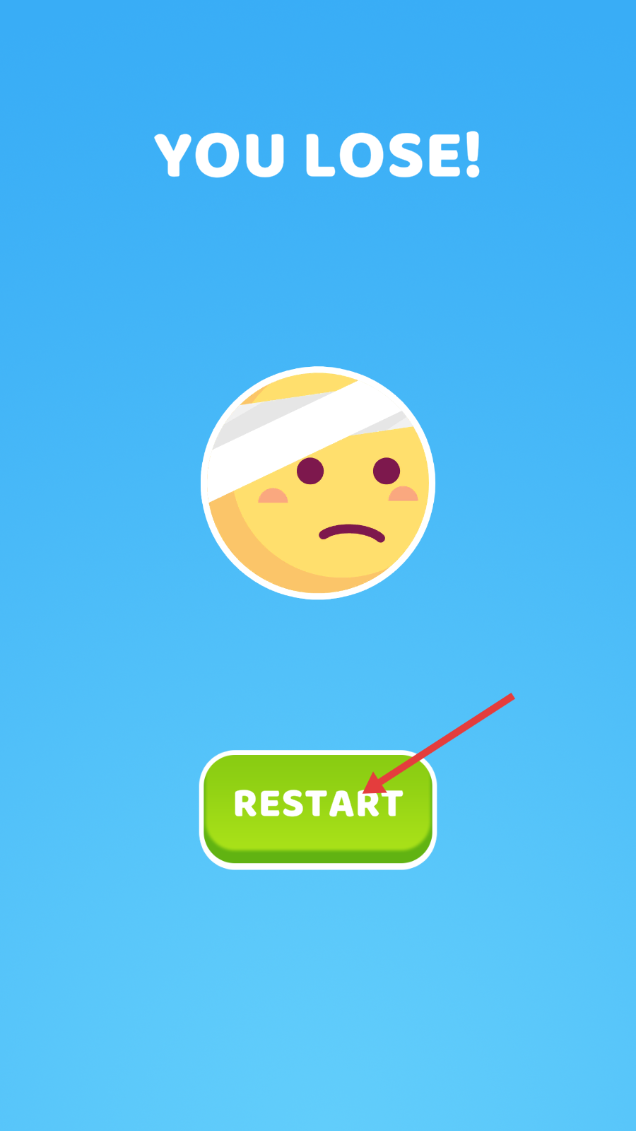 4、若战斗失败出现【YOU-LOSE!】界面,点击绿色【RESTART】按钮,重新开始本关卡挑战。