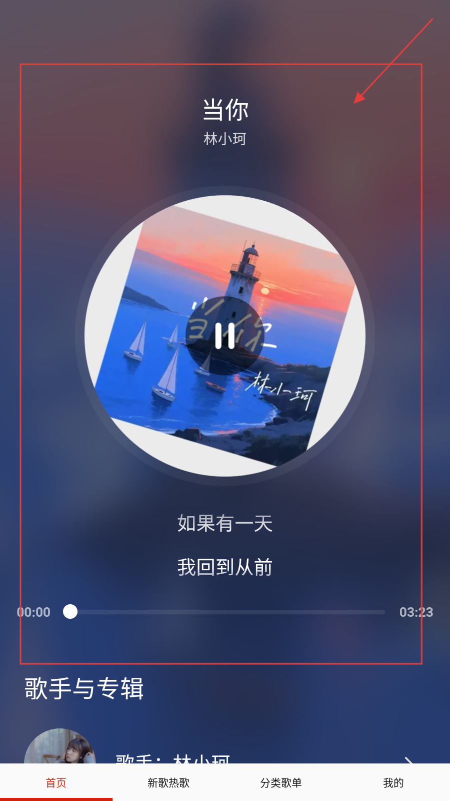 4、进入歌曲播放页面,可进行暂停、播放等操作。