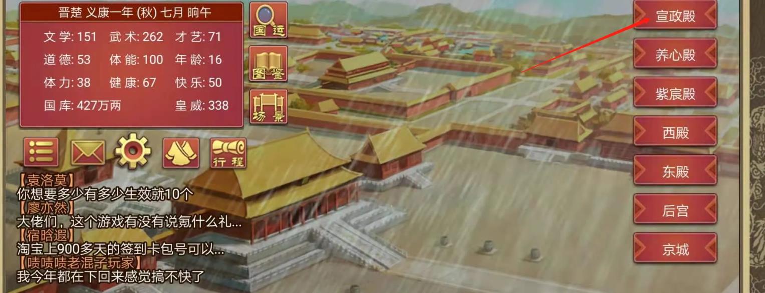 1·当我们进入游戏主页面后,点击【宣政殿】进入。