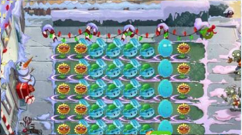 -寒霜白毛丹:投掷雪球对范围内僵尸造成溅射和减速效果,并有概率将僵尸冰封;满足条件时还可以蜷缩自身并击退非冰封僵尸或秒杀被冰封的僵尸。