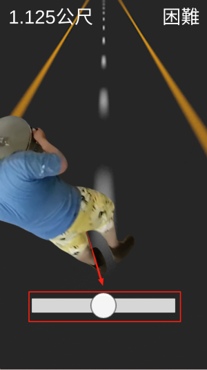 2、初次尝试:在“0公尺 簡罩”界面轻移横杆,努力保持鍋子平衡,目标先过1公尺。