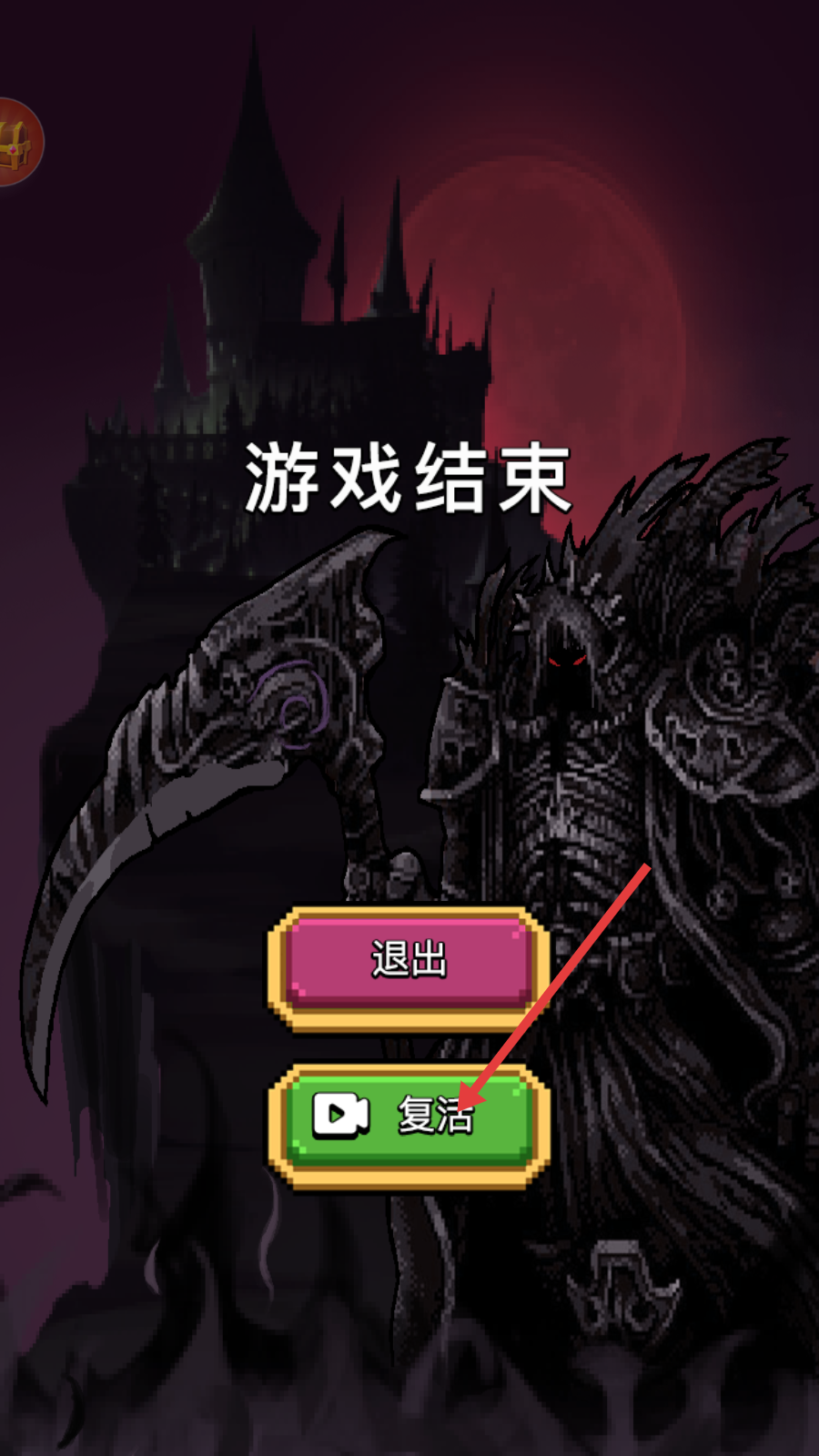 4、战斗结束后点击【复活】按钮,观看视频复活继续战斗,或选【退出】重新挑战关卡。