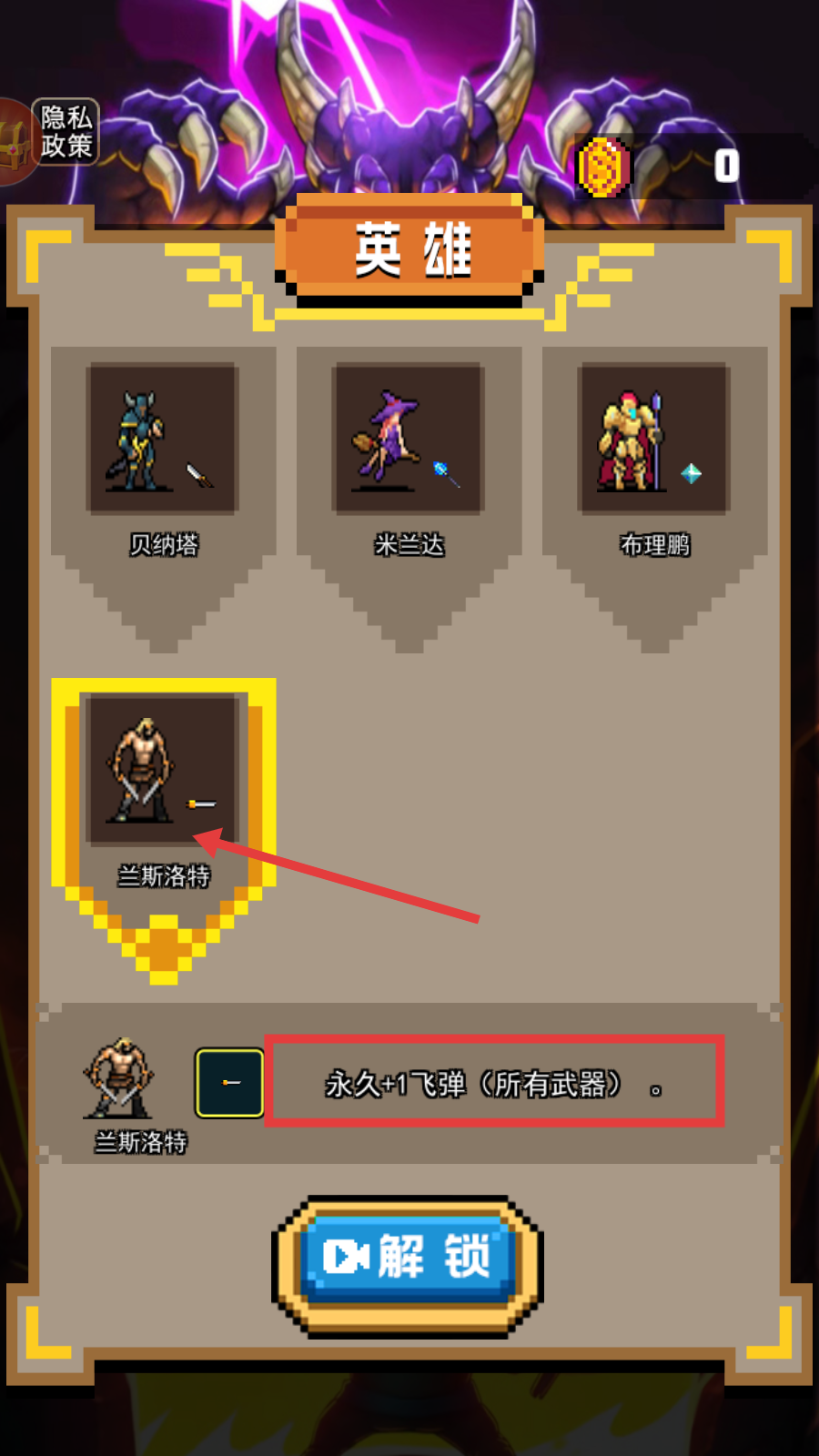 1、优先选择【兰斯洛特】,其【永久 1飞弹(所有武器)】特性,解锁后提升武器飞弹数量增强战力。