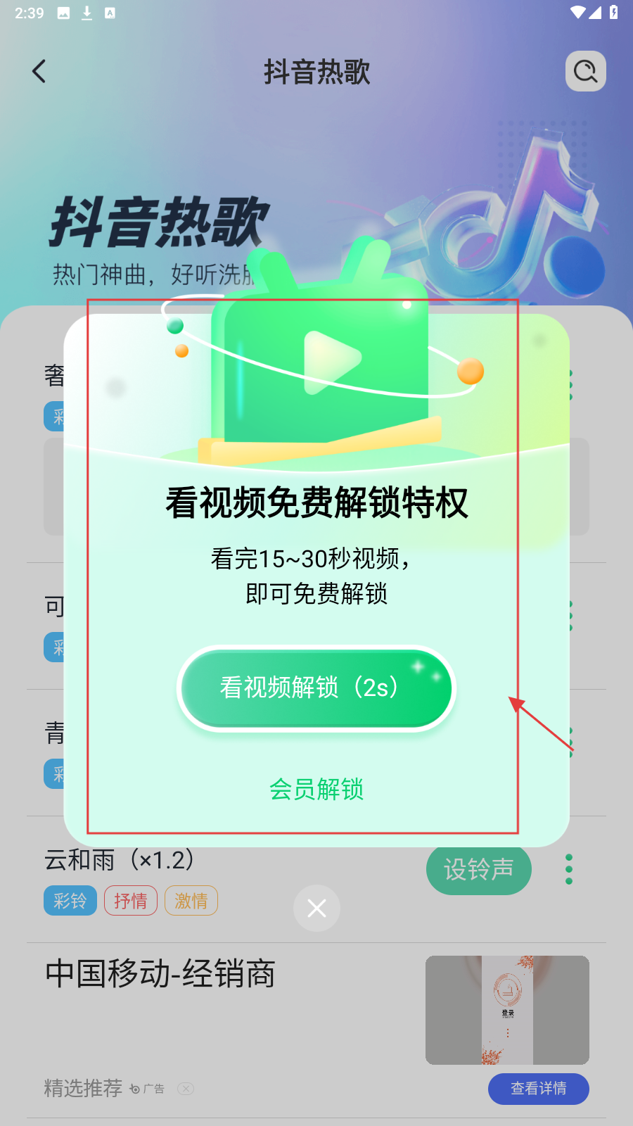 4、若需解锁特权,点【看视频解锁】,完成后使用功能。