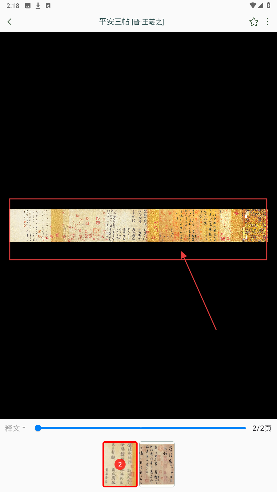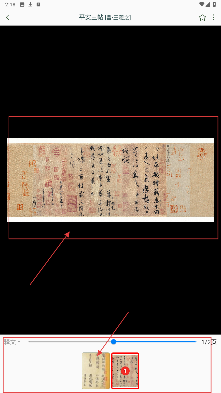 4、通过进度条或缩略图,翻阅【平安三帖】完整内容,欣赏书法细节。