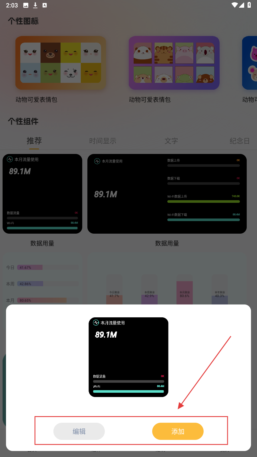 4、选好组件,点弹窗【添加】,将组件添加到手机桌面。